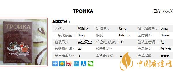 tponka香煙參數(shù)信息