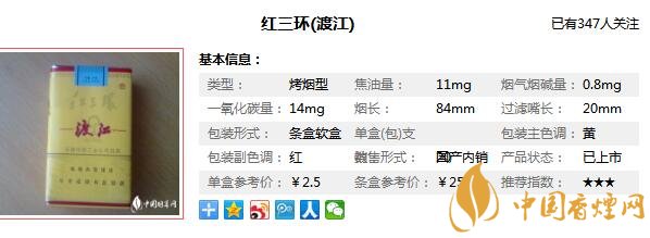 紅渡江香煙多少錢一包 紅三環(huán)渡江香煙價格25元/包