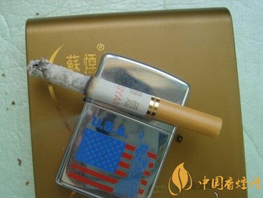 暗金色塑盒包裝,主體為方形,上下兩側(cè)作弧形處理,給人以輕巧圓潤(rùn)之感。正面左側(cè)一道極似女人身體曲線的“S”形劃過,旁邊有繁寫的“蘇煙”二字,右下方是“江蘇中煙工業(yè)公司出品”,設(shè)計(jì)簡(jiǎn)約,表意婉約。背面標(biāo)有商品的基本信息(包括三項(xiàng)理化指標(biāo)、條形碼等)和警示語。其余四面皆無文字或圖案。