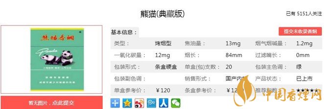 熊貓(典藏版),是“熊貓” 卷煙品牌家族中的經(jīng)典之作,有著近半個世紀(jì)的特供背景,深得偉人鄧小平鐘愛,享譽海內(nèi)外。直至1997年香港回歸之際,才以禮盒形式供應(yīng)市場,卷煙完全保持了特供時期的原汁原味,凝聚了歷史情感和偉人情結(jié),限時限量發(fā)售,是珍貴的收藏禮品。因此,熊貓(典藏版)的使命主要是強化表現(xiàn)熊貓品牌的至臻品質(zhì)、傳奇歷史和頂級形象,不以追求銷量為目的。經(jīng)香煙網(wǎng)小編市場調(diào)查熊貓(典藏版)售價為120元/包。