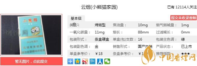 小熊貓家園采用來自云南會澤、文山的烤煙葉、阿拉伯的水煙葉以及津巴布韋的雪茄煙葉復(fù)配而成,小熊貓家園也正是在這樣優(yōu)質(zhì)復(fù)配煙絲的基礎(chǔ)上散發(fā)出煙草獨特的煙草自然本香。經(jīng)香煙網(wǎng)小編市場調(diào)查云煙小熊貓家園售價為18元/包。