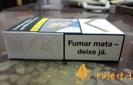 正面的包裝設計,也是目前歐盟版本的標準式樣。翻蓋上的文字為葡語,內(nèi)容自然是關于吸煙有害健康了。