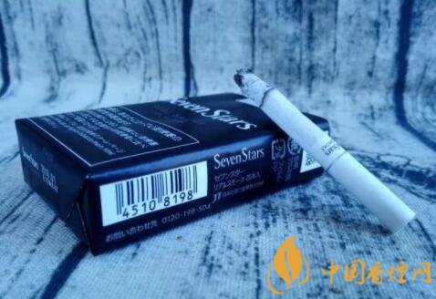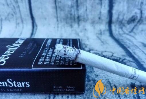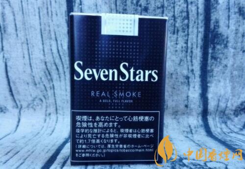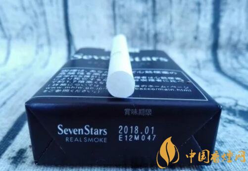 煙盒的正反及左右兩側(cè)均以白色的小五角星為圖案,橫平豎直地排列開來。與其它Seven Stars版本一樣,位于煙盒正反兩面中間都有阿拉伯?dāng)?shù)字“7”的標(biāo)識。REAL SMOKE,直譯成中文是“真煙,真正的香煙”之意。A BOLD FULL FLAVOR,中文意思是“煙味十足”。綜合意思,是說此款日稅黑七星的品質(zhì)之高。