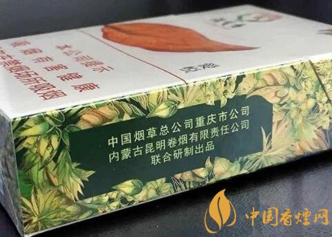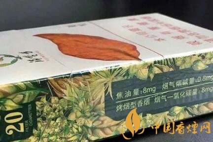 看名字,就能猜出個大概,這是重慶煙。只是煙盒正面圖案上一片大大的煙葉,卻令我不由得想到了“黃金葉”這個品牌。煙盒正面色調(diào)為乳白色又滲進了些淺綠色,整體為淺綠色,預示著這款香煙口味應該偏淡。側(cè)面的理化指標為8mg,也說明了這一問題。