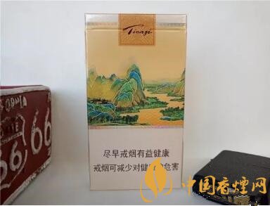煙盒的背面則就是千里江山畫的另一面,上面是天子的拼音。在畫的下面則就是警示標(biāo)語了。