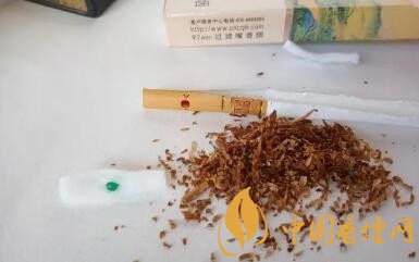 拆開一根煙,煙絲雖然非常的細(xì)小,但是大小還算規(guī)整。煙嘴內(nèi)的包裝是綠色的,聞起來有一股香味,淡淡的甜。