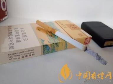 這款煙的包裝是以淡黃色為主,十分的干凈漂亮,用一種特殊的線來勾勒一些邊,使圖案的整體顯示十分鮮活。
