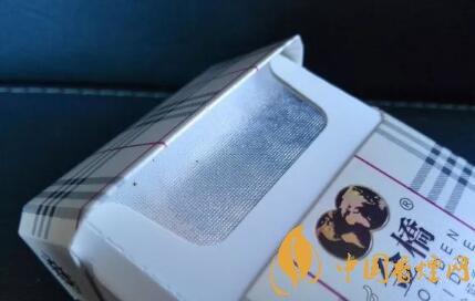 煙盒的高度是97mm。正反兩面的圖案設計相同,都是有如床單或者臺布樣式的畫面。九宮格樣式的中間,印制有金橋品牌香煙的LOGO,以及英倫奶香的名稱。從警示語句內(nèi)容來看,是大字版本初期款,2016年10月改版前的款式。