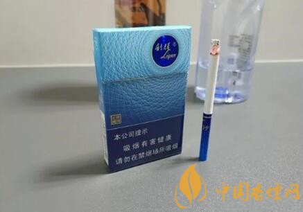 看包裝,煙盒的正面通體以藍(lán)色為主色調(diào),整體的色彩仍然維持著“利群”系經(jīng)典的三段式設(shè)計(jì),顏色從上至下逐漸加深。上段為小翻蓋,在小翻蓋的右側(cè)是一個直徑約為18MM的圓形標(biāo)志,圓形標(biāo)志的主色調(diào)為寶藍(lán)色,里面是利群的漢字和漢語拼音,圓形的輪廓和字體的顏色為金色。