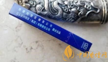 煙盒正反版面一樣,上蓋位置有雪峰日照金山,彌漫的云霧拱衛(wèi)金頂。只是細(xì)支的這個圖片質(zhì)量不太理想。煙盒的中部是金色藏文書寫風(fēng)格的“雪域”字樣。居中,有藍色的蓮花座圖案。下有銀色小字——西藏自治區(qū)煙草公司總經(jīng)銷。