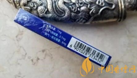 煙盒的左側(cè),標(biāo)識有這款的理化指標(biāo),7mg的焦油含量,中規(guī)中矩,不算細(xì)支里標(biāo)稱值最高的。