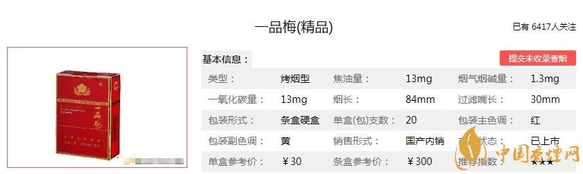 一品梅香煙是1991年創(chuàng)牌的,因?yàn)槭袌?chǎng)原因,一品梅香煙在市面上已經(jīng)很難看到了。相信大家對(duì)這款香煙沒有太多的了解,下面小編就為大家介紹一下一品梅精品香煙的價(jià)格參數(shù),以及抽過(guò)的煙民對(duì)這款一品梅精品香煙口感的評(píng)價(jià)。