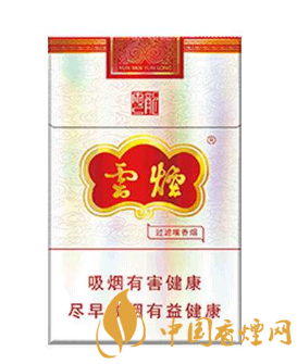 4、云煙(云龍),價格:16元/包。 84mm超細(xì)支的云龍,在煙包正面上,依舊沿用令人過目不忘的logo,“云龍”二字的繁體方方正正,給人以一種中規(guī)中矩的視覺感受。翻蓋上的假印花讓人第一印象,這是一包軟包香煙,其實只是點綴一下煙標(biāo)的設(shè)計,走品牌復(fù)古的路線。