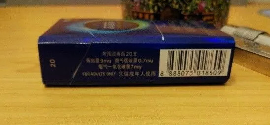 555香煙雙冰三項理化指標(biāo)分別為:焦油含量9毫克,煙堿量也就是尼古丁含量為0.7毫克,一氧化碳7毫克。另一側(cè)寫標(biāo)注了它的身份信息,中煙英美授權(quán),印尼產(chǎn),國際條形碼為888開頭,為555亞洲品牌注冊地,也是英美的亞洲總部新加坡。