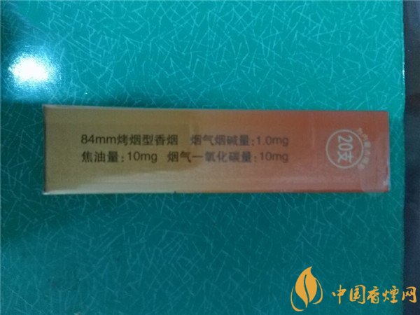 煙盒右側(cè)標(biāo)注著香煙的理化數(shù)值,標(biāo)注著過(guò)濾嘴香煙長(zhǎng)84mm,1mg煙氣煙堿量,10mg焦油量,10mg煙氣一氧化碳量,印有主品牌單位名稱(chēng),數(shù)量指標(biāo)。