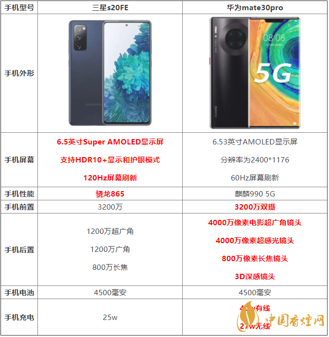 以上就是香煙網(wǎng)小編為大家介紹的華為mate30pro和三星s20FE哪個(gè)手機(jī)好的相關(guān)內(nèi)容了,希望對(duì)大家在選擇時(shí)有所幫助。了解更多實(shí)用手機(jī)相關(guān)咨詢,請(qǐng)關(guān)注香煙網(wǎng)。