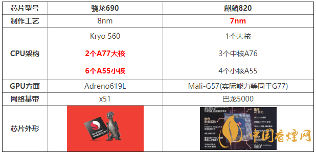 驍龍690和麒麟820性能參數(shù)對(duì)比