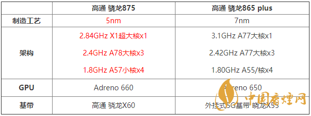 驍龍865plus,采用的是7nm工藝制造,1個3.1GHz的 超大核A77 +3個2.42GHz 大核A77+4個1.80GHz A55小核。GPU型號為Adreno 650。