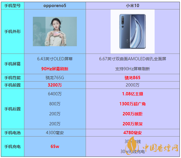 小結(jié):在手機的續(xù)航方面是小米10更好,為用戶帶來最多的電池容量,在手機的充電速度方面是opporeno5最優(yōu),為用戶帶來65w的充電速度