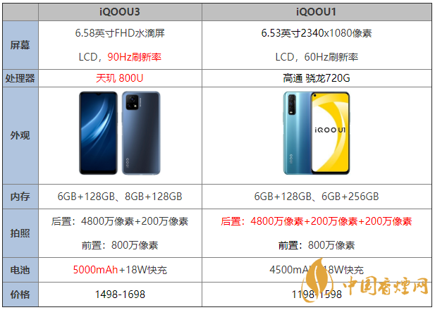 QOOU3于今日正式上架,那么iQOOU3和iQOOU1對(duì)比,有哪些參數(shù)配置上的區(qū)別,iQOOU3和iQOOU1哪個(gè)好,哪款性價(jià)比會(huì)更高呢,接下來香煙網(wǎng)小編將對(duì)iQOOU3和iQOOU1的參數(shù)配置對(duì)比進(jìn)行介紹,感興趣的朋友一起來看看吧!