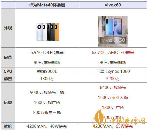華為Mate40標準版和vivox60哪款手機更好?華為Mate40標準版和vivox60兩款手機預計都將在本月末進行發(fā)售,那么這兩款手機哪款手機性能更好呢?哪款更值得入手呢?下面香煙網小編將對華為Mate40標準版和vivox60參數(shù)配置進行對比,一起來看看吧!