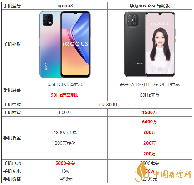 iqoou3和華為nova8se高配版哪個(gè)更好 參數(shù)配置對(duì)比