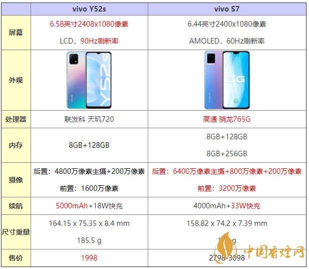 vivoy52s和vivos7手機(jī)哪個更好?vivoy52s和vivos7對比,有哪些區(qū)別和配置差距,哪款手機(jī)更值得入手?接下來香煙網(wǎng)小編就為大家?guī)砹藇ivoy52s和s7全面參數(shù)配置對比,一起看看哪款更值得入手性價比更高吧!