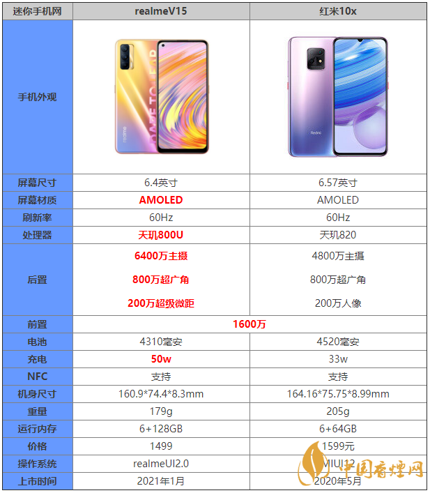 realmev15和紅米10x這兩款手機(jī)都在千元機(jī)的范圍,許多小伙伴不知道入手哪款手機(jī),那么這兩款手機(jī)的區(qū)別是什么?有什么不同之處?哪款手機(jī)更值得入手?下面香煙網(wǎng)小編為大家?guī)碜钚碌膔ealmev15和紅米10x參數(shù)對(duì)比,快來看看吧。