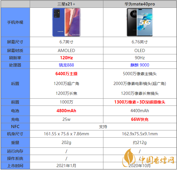 三星s21+和華為mate40pro哪款手機更好?三星s21+和華為mate40pro兩款非常熱門的旗艦手機,那么小伙伴們要在其中選擇一個的話,到底是要如何選擇呢?下面香煙網(wǎng)小編將對三星s21+和華為mate40pro參數(shù)對比進行介紹,一起來看看吧!