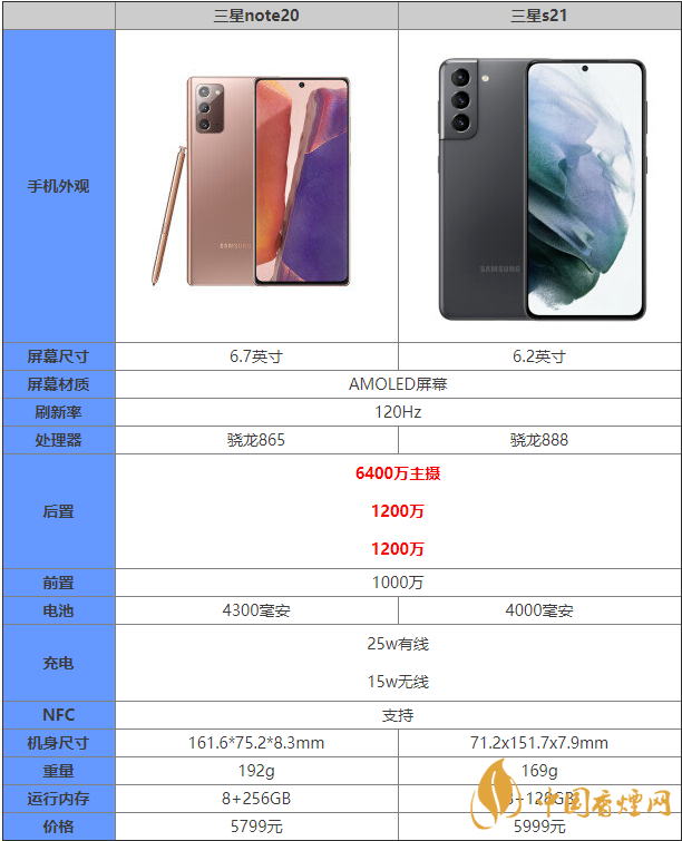 三星s21和三星note20哪款手機更好?許多朋友對這兩款手機都十分關注,那么這兩款手機的區(qū)別是什么?有什么不同之處?哪款手機更值得入手?接下來香煙網小編為大家?guī)砣莝21和三星note20的參數對比,感興趣的朋友快來看看吧。