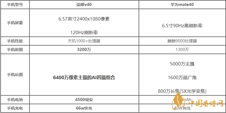 榮耀v40和華為mate40是二款中高端5g手機,從目前網(wǎng)上曝光的信息看,二款手機的參數(shù)配置都十分強悍,那么榮耀v40和華為mate40哪個好呢?有什么區(qū)別?接下來香煙網(wǎng)小編將對榮耀v40和華為mate40參數(shù)對比,一起來看看參數(shù)對比吧~