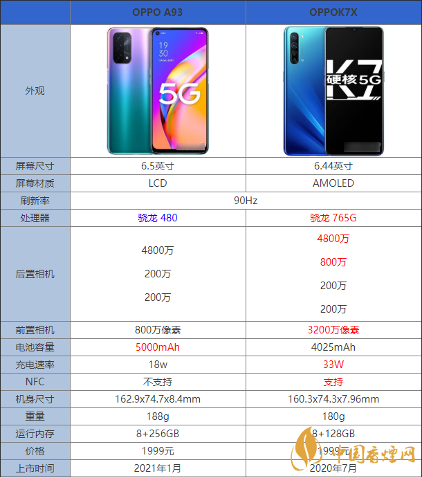 OPPOA93和OPPOK7X自發(fā)布以來就十分受歡迎,在價(jià)格相同的情況下,OPPOA93和OPPOK7X哪一個更好,更值得入手,接下來香煙網(wǎng)小編將為大家?guī)鞳PPOA93和OPPOK7X參數(shù)對比,感興趣的朋友一起來看看吧!