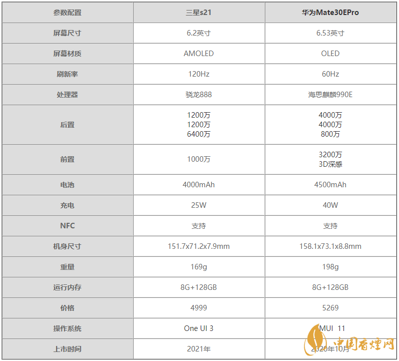 三星s21手機(jī)已經(jīng)正式發(fā)布啦,相信有不少小伙伴們都非常關(guān)注三星s21手機(jī),那么三星s21和華為Mate30EPro有什么區(qū)別?哪款手機(jī)更好?下面香煙網(wǎng)小編為大家介紹一下關(guān)于三星s21和華為Mate30EPro的詳細(xì)對比,一起來看看吧!