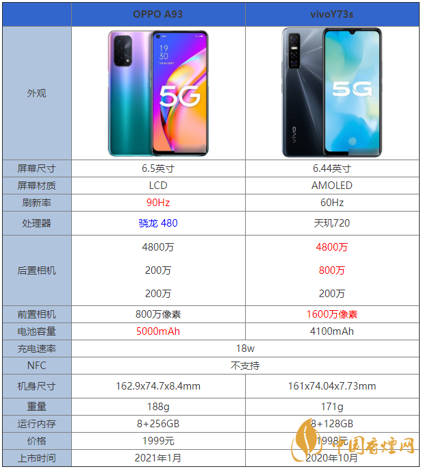 OPPOA93和vivoY73s的價格都相差不多,許多小伙伴不知道該入手哪款手機,那么OPPOA93和vivoY73s有什么區(qū)別?哪款手機更值得入手?下面香煙網(wǎng)小編將對OPPOA93和vivoY73s參數(shù)對比進(jìn)行介紹,感興趣的朋友一起來看看吧!