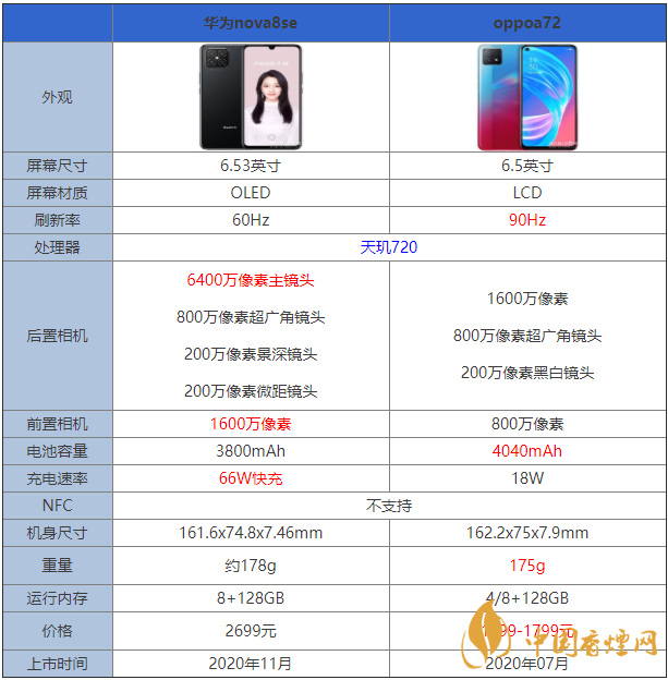 華為nova8se和oppoa72兩款手機(jī)都是采用了相同的處理器,那么在這兩款手機(jī)中到底是哪一款有著更加好的性能呢?哪款手機(jī)更值得入手?接下來(lái)香煙網(wǎng)小編將對(duì)華為nova8se和oppoa72參數(shù)對(duì)比進(jìn)行介紹,一起來(lái)看看吧!