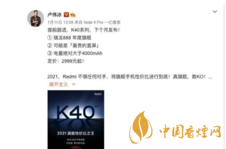 以上是小編整理的有關紅米k40pro的價格及官方報價的最新信息,相信在座的朋友們聽到小編的介紹有所認識,但是小編在這里提醒一句還是要根據(jù)自身情況考慮哦,更多最新最實用的資訊請持續(xù)關注香煙網(wǎng)。
