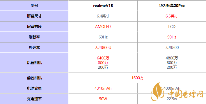 以上是小編整理的有關realmeV15和華為暢享20Pro哪個好的最新信息,相信在座的朋友們聽到小編的介紹有所認識,但是小編在這里提醒一句還是要根據(jù)自身情況考慮哦,更多最新最實用的資訊請持續(xù)關注香煙網。
