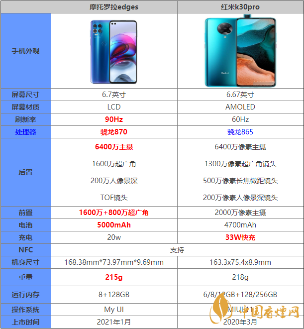 通過上面的介紹,相信大家對摩托羅拉edges和紅米k30pro參數(shù)對比以及哪款手機更值得入手都有了一定了解了,希望對大家在選擇時有所幫助。了解更多實用手機相關咨詢,請關注香煙網(wǎng)。