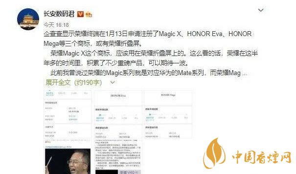 根據(jù)最新爆料,榮耀近日注冊(cè)的 Magic X 就是榮耀的折疊屏產(chǎn)品。