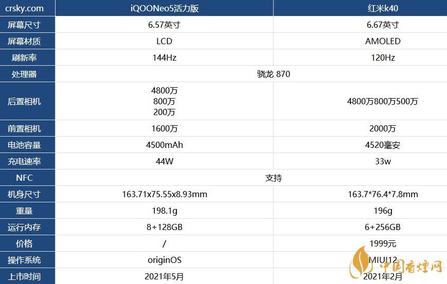 以上就是香煙網(wǎng)小編為大家?guī)淼膇QOONeo5活力版和紅米k40參數(shù)對比-哪款值得買相關(guān)資訊,以上資訊全來自網(wǎng)絡(luò),更多最新最實用的資訊請持續(xù)關(guān)注香煙網(wǎng)。
