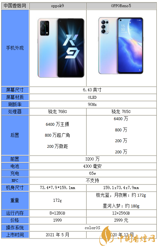 ?以上就是小編收集到的OPPOK9和OPPOReno5哪個性價比高-OPPOK9和OPPOReno5性能分析的相關內(nèi)容,以上內(nèi)容均來源于網(wǎng)絡,僅供參考,一切以實際為準,更多最新數(shù)碼資訊請關注香煙網(wǎng)。