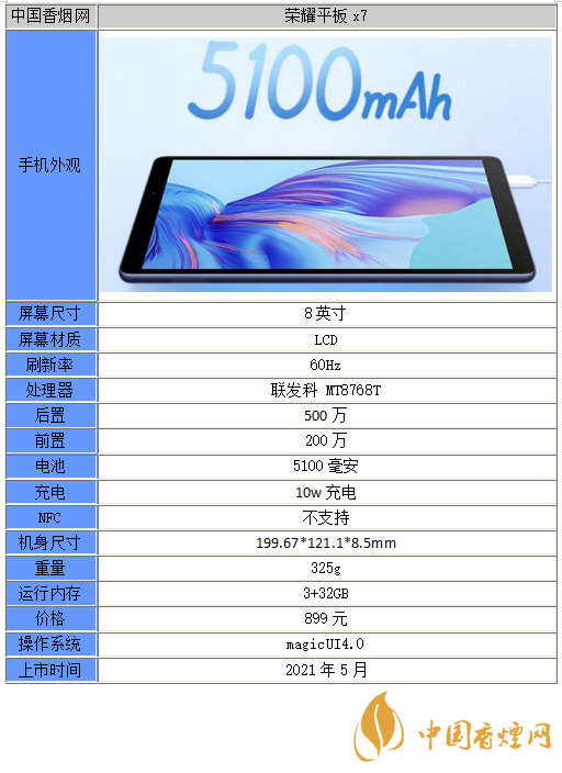 以上就是小編收集到的榮耀平板x7參數(shù)配置-榮耀平板x7性能分析的相關內(nèi)容,以上內(nèi)容均來源于網(wǎng)絡,僅供參考,一切以實際為準,更多最新數(shù)碼資訊請關注香煙網(wǎng)。
