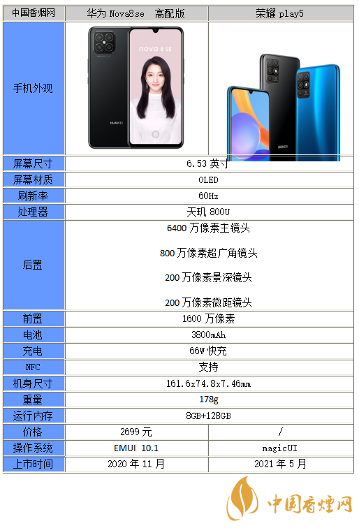 以上就是小編收集到的榮耀play5和華為nova8se高配版本區(qū)別在哪-應(yīng)該買(mǎi)哪個(gè)的相關(guān)內(nèi)容,以上內(nèi)容均來(lái)源于網(wǎng)絡(luò),僅供參考,一切以實(shí)際為準(zhǔn),更多最新數(shù)碼資訊請(qǐng)關(guān)注香煙網(wǎng)。