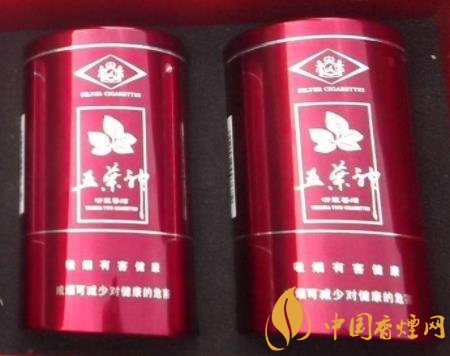 五葉神(典藏罐裝)106元/盒。香煙為五葉神品牌旗下的一款香煙。罐裝,紅色底,銀色文字,鋁合金材料,觀感雅致大方 優(yōu)秀配方工藝師配方,手工選取光潔無(wú)暇3年自然醇化期煙葉 神農(nóng)液生物減害技術(shù)。煙氣中亞硝胺,苯并芘,自由基等有害物質(zhì)綜合降幅達(dá)到63.8%。