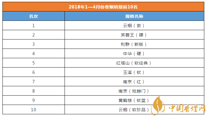 2018轉(zhuǎn)眼已經(jīng)即將過去五個(gè)月,作為煙草人2018年你知道哪些煙最好賣嘛?你知道哪些煙銷量最高嘛?下面香煙網(wǎng)小編為大家整理介紹2018年1—4月份卷煙銷量前10名。一起來(lái)看看吧!