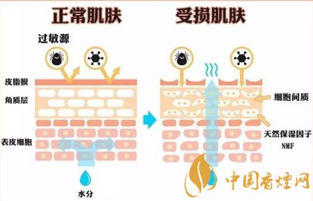煙草里的“丙酮”,是導致皮膚敏感的罪魁禍首之一。皮膚上的油脂膜既可以阻擋外來過敏原刺激到肌膚;又能防止皮膚內的水分被空氣蒸發(fā)。這樣才能構建出健康的“肌膚屏障”。