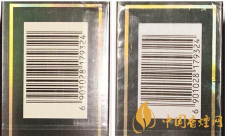 煙用包裝膜材質(zhì)及條形碼對比:真品卷煙條包裝膜材質(zhì)光滑,均勻無皺褶,條形碼區(qū)域呈淡黃色,套色均勻清楚。假煙條包裝膜材質(zhì)粗糙,有不均勻皺褶,條形碼區(qū)域?yàn)榘咨?,套色邊緣放大后模糊不清?/p>