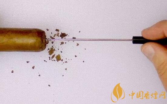 通氣針樣子很簡(jiǎn)單,就是一個(gè)帶有把手的細(xì)長(zhǎng)的金屬針,有些針的頭部帶有螺旋或者鋸齒。使用的時(shí)候一手拿著雪茄,一手拿著通氣針,用針插進(jìn)雪茄頭部稍微旋轉(zhuǎn)一下,插進(jìn)去的深度一般到雪茄中部就可以了,根據(jù)透氣情況,可以多插幾次,一般透氣性就能有很好的解決了。那種頭部帶鋸齒的通氣針雖然對(duì)通氣有比較好的處理,可是非常暴力,幾乎是在雪茄內(nèi)部旋出一個(gè)洞,一般情況還是建議不要使用。