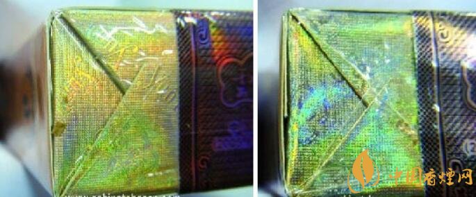 真品小盒商標紙采用專屬高端特供進口材質(zhì)的紙張,適用于軟包硬化包裝工藝硬度材質(zhì),顏色以黃金色為主色;假煙小盒商標紙是普通材料,紙質(zhì)低劣,比較薄、沒有硬度,顏色呈現(xiàn)出淡黃色,與真品顏色差異明顯。