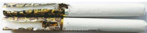 真煙煙支采用單一醋纖濾嘴,過濾嘴長度為30mm;假煙煙支過濾嘴較短長度約為22mm,與真品特征存在明顯差異。